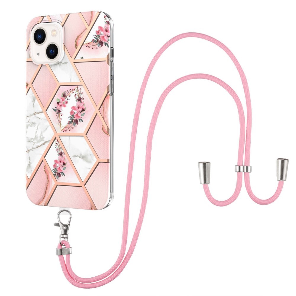 Gelové pouzdro TPU "Pink Flowers" pro iPhone 14 s praktickou šňůrkou na přenášen ...